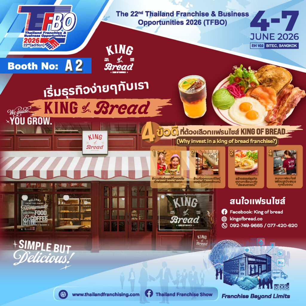 King of Bread คือ Lifestyle Destination ที่ผสานความลงตัวระหว่างรสชาติ ความคิดสร้างสรรค์ และบรรยากาศที่เอื้อต่อการใช้เวลาคุณภาพ เป็นคาเฟ่ที่เชี่ยวชาญด้าน Artisan Bakery และเมนูอาหารเช้าสุดพิเศษ พร้อมออกแบบพื้นที่ให้เป็นแหล่งพบปะ พักผ่อน และทำงานได้อย่างสะดวกสบาย
